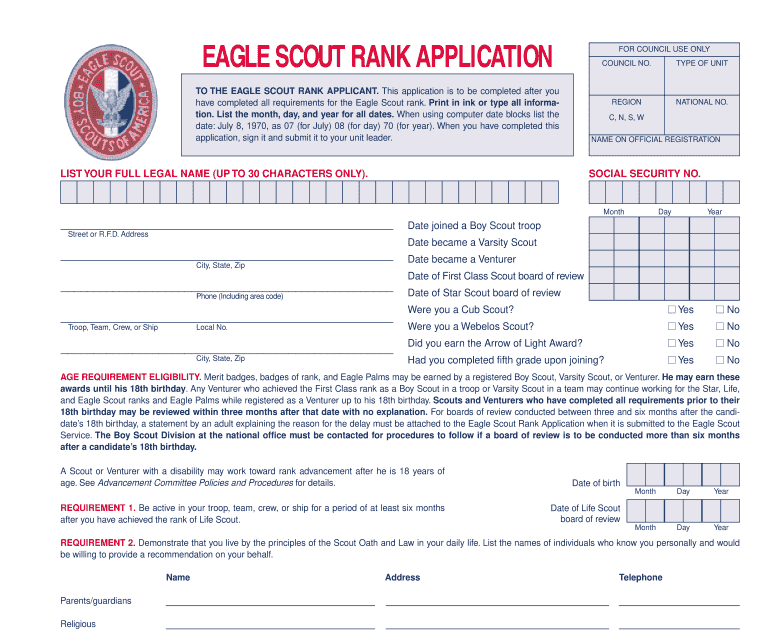 We did not find results for: Maybe you would like to learn more about one of these? Signnow.com has been visited by 100k+ users in the past month Download or email eagle scout & more fillable forms, register and subscribe now! Download or email eagle scout & more fillable forms, register and subscribe now!